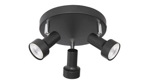 Trojité bodové svítidlo Konrad vyrobeno z kovu bude svým tradičním stylem praktickým doplňkem téměř k jakémukoli zařízení domácnosti. Doporučujeme především pro váš obývací pokoj, ložnici nebo chodbu. Černé svítidlo je doplněno černým, velkým, kulatým ozdobným podstavcem. Díky pohyblivým hlavám svítidla můžete světlo lampy nasměrovat podle přání. Svítidlo Konrad lze použít se třěmi žárovkami o výkonu až 50 W, patice typu GU10. Pokud namontujete bodové svítidlo do své ložnice, stojí za to zvolit pro něj zdroj teplého bílého světla, který poskytuje příjemnou a útulnou atmosféru. Rozměry trojitého bodového svítidla Konrad jsou: šířka 205 mm, vzdálenost od stěny 100 mm. Tento model se dodává bez světelného zdroje.
