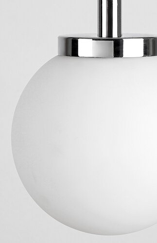 Koupelnovou závěsnou lampu Togo doporučujeme těm, kteří by si namísto běžných stropních svítidel v koupelně chtěli zútulnit tuto místnost svého domova moderním přívěskem. Jakoby v koupelně svítilo světlo měsíce! Kovové svítidlo chromové barvy je doplněno kulovitým bílým skleněným stínítkem a lze jej připevnit na strop pomocí kulatého dekorativního podstavce v barvě chromu. Togo lze použít s jedním světelným zdrojem o výkonu až 40 W, objímkou typu E14. Doporučujeme světelný zdroj s přirozeným bílým světlem, se kterým dosáhneme v koupelně moderního čistého efektu. Krytí IP44 zajišťuje jeho ochranu proti pronikání pevných částic o průměru větším než 1 mm, jakož i proti stříkající vodě z jakéhokoli směru. Rozměry koupelnového svítidla Togo: průměr 150 mm, převis 1200 mm, montážní průměr 100 mm. Tento model je dodáván bez světelného zdroje.