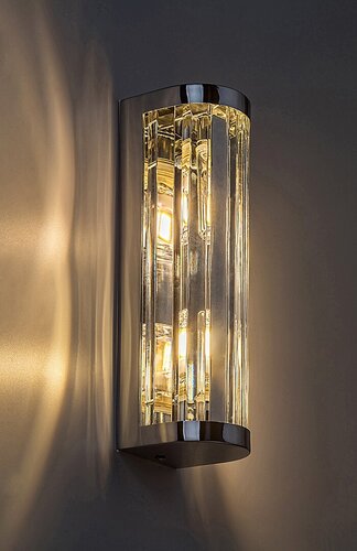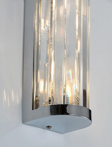 Koupelnové nástěnné svítidlo Sybil v klasickém stylu se třpytivým povrchem může být elegantním a poutavým doplňkem vaší koupelny. Je navrženo tak, aby propouštělo světlo na velkou plochu zevnitř lampy, což z něj činí ideální volbu pro účinné osvětlení okolí zrcadla. Kovová, chromová barva svítidla Sybil je doplněna průhledným skleněným stínítkem, nástěnné svítidlo má půlkruhový tvar a lze jej vertikálně namontovat na zeď pomocí obdélníkového ozdobného podstavce. Nástěnnou lampu lze používat se dvěma světelnými zdroji každý s maximálním příkonem do 28 W a s paticemi typu G9. Chcete-li v koupelně dosáhnout moderního, čistého efektu, pro lampu doporučujeme zvolit zdroje přirozeného bílého světla. Krytí IP44 zaručuje, že tento model Sybil je chráněn proti vniknutí pevných předmětů větších než 1 mm a proti stříkající vodě z jakéhokoli směru. Výška koupelnového svítidla je 255 mm a vzdálenost od stěny je 80 mm. Tento model se dodává bez světelných zdrojů.