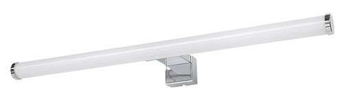Nástěnné koupelnové svítidlo Nour, které se montuje nad zrcadlo nad umyvadlem, nabízí praktické a prostorově úsporné řešení osvětlení pro každou moderní koupelnu. Trubkový model v chromové barvě, který je celý vyroben z plastu, je doplněn bílým stínítkem a lze jej připevnit na stěnu pomocí čtvercového ozdobného podstavce v chromové barvě (nástěnný držák je součástí dodávky). Svítilna Nour má zabudovaný LED světelný zdroj s energetickou třídou F, výkonem 9 W, svítivostí 920 lumenů se stínítkem, 1230 lumenů bez stínítka as životností 20 000 hodin. Světelný zdroj o teplotě 4000 K vyzařuje přirozené bílé světlo, které působí čistě a moderně. Krytí IP44 svítidla Nour zaručuje, že je chráněno proti vniknutí pevných předmětů větších než 1 mm a proti stříkající vodě z jakéhokoli směru. Rozměry zrcadlové lampy jsou tyto: šířka 500 mm, průměr 30 mm, vzdálenost od stěny 120 mm.