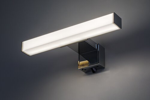Koupelnové nástěnné svítidlo Rabalux Oliro je ideální volbou pro ty, kteří hledají flexibilní, menší doplňkové osvětlení do moderní koupelny. Tento voděodolný model je celý vyroben z plastu s chromovou základnou a hranatým bílým stínidlem. Svítidlo lze upevnit na zrcadlo, nábytek nebo stěnu pomocí montážního klipu, který je součástí balení. Koupelnová lampa má zabudovaný LED světelný zdroj, který vyzařuje přirozené bílé světlo a vytváří čistý, moderní efekt. Díky svému designu svítidlo rovnoměrně vyzařuje světlo po celé ploše stínidla. Nástěnná lampa má krytí IP44, což zajišťuje její bezpečné použití v koupelně. LED technologie umožňuje energeticky úsporný provoz a dlouhou životnost.