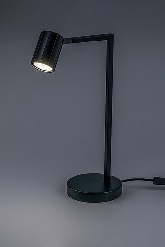 Moderní stolní lampu Karter lze umístit do obývacího pokoje, ložnice nebo pracovny. Matné černé kovové tělo doplňuje válcové hliníkové stínítko ve stejné barvě a lampa stojí na kulatém ozdobném podstavci. Hlavu lze posouvat nahoru a dolů v rozsahu 90°, takže si vždy můžete nastavit úhel osvětlení, který nejlépe vyhovuje vaší činnosti. Svítidlo Karter lze použít s jedním světelným zdrojem s maximálním příkonem do 5 W, typ patice GU10. Podle toho, kde a pro jaký účel lampu používáte, si můžete vybrat zdroje světla s různými teplotami barev. Pokud se používá v pracovně, doporučujeme přirozenou nebo studenou bílou žárovku, neboť tento typ světla pomáhá udržovat koncentraci a přispívá tak k efektivní práci. Rozměry stolní lampy s vypínačem jsou tyto: výška 440 mm, šířka 270 mm, průměr stínítka 50 mm, průměr podstavce 140 mm, délka kabelu 1500 mm. Tento model se dodává bez světelného zdroje.