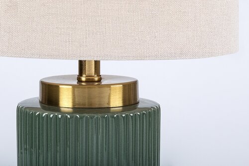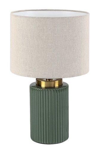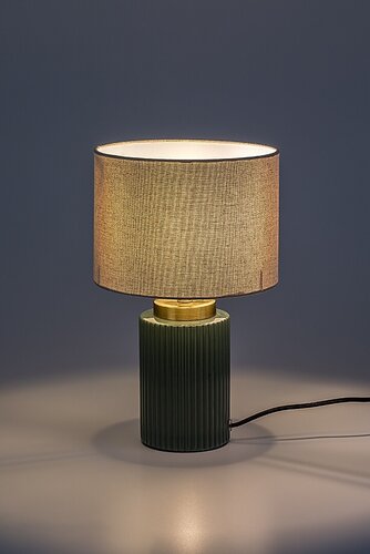 Stolní lampa Rabalux Glovy je doporučena těm, kteří hledají pečlivě navržené doplňkové svítidlo do ložnice nebo obývacího pokoje. Díky svému decentnímu barevnému provedení lze tento model snadno začlenit do různých typů interiérů. Můžete ji umístit na noční stolek nebo na stůl. Tělo lampy je vyrobeno ze zelené keramiky s rýhovaným vzorem, stínidlo je z bílého textilu. Stínidlo má válcový tvar a je otevřené shora i zdola. Díky světlé barvě propouští model hodně světla, a proto jej lze využít i jako lampu na čtení. Lampa funguje s jednou žárovkou s maximálním příkonem 40 W. Typ objímky je E14. Noční svítidlo je doplněno černým textilním kabelem a spínačem na kabelu. Dodává se bez světelného zdroje.