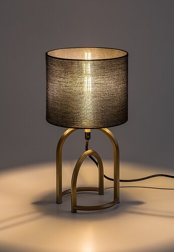 Stolní lampa Rabalux Gisaya je ideální pro ty, kteří hledají moderní doplňkové svítidlo s jedinečným designem. Tento model je doporučen především do ložnice nebo obývacího pokoje, kde jej lze umístit na noční stolek nebo na stůl. Tělo noční lampy je vyrobeno z kovu ve zlaté barvě a má charakteristický zakřivený tvar. Stínidlo je válcovité a vyrobené z černé textilie. Stolní lampu lze používat s jednou žárovkou s maximálním příkonem 25 W. Typ objímky je E14. Díky tmavému stínidlu lampa poskytuje tlumené, diskrétní osvětlení, což z ní činí ideální volbu do ložnice, pokud nechcete rušit svého partnera ostrým světlem. Noční světlo je doplněno černým textilním kabelem a spínačem na kabelu. Dodává se bez světelného zdroje.