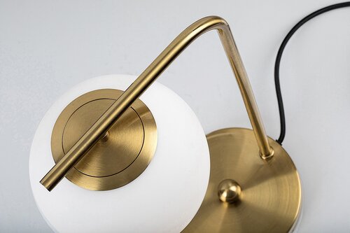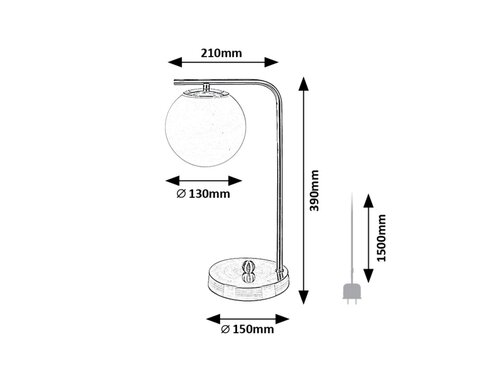 Kiara je moderní stolní svítidlo se svěžím a elegantním vzhledem, vhodné zejména do obývacího pokoje nebo ložnice. Kovové tělo ve zlaté barvě doplňuje bílé skleněné stínítko a štíhlý, zahnutý stonek je zakončen kulatým ozdobným podstavcem ve zlaté barvě. Kulovitá hlava lampy visící směrem dolů je připevněna k horní vodorovné části stonku. Svítilnu Kiara lze používat s jedním světelným zdrojem G45 s maximálním příkonem do 35 W, typ patice E27. Chcete-li tento model používat v ložnici, doporučujeme použít zdroj teplého bílého světla, který pomůže vytvořit útulnou domácí atmosféru, uvolnit oči a pomůže vám uvolnit se před usínáním. Rozměry stolní lampy Kiara s drátovým vypínačem a textilním kabelem jsou tyto: šířka 210 mm, výška 390 mm, průměr stínítka 130 mm, průměr ozdobného podstavce 150 mm, délka kabelu 1500 mm. Tento model se dodává bez světelného zdroje.