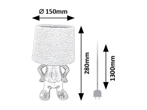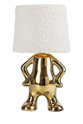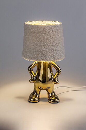 Stolní lampa Rabalux Smurfy je doporučena těm, kteří mají rádi kreativní svítidla s neobvyklým designem, jež přinášejí úsměv do každodenního života. Kdo by si nepamatoval roztomilé Šmouly? Ačkoli tato vesele vypadající designová lampa není modrá, její tělo je tvarováno jako šmoula. Místo tradiční dekorativní základny stojí na šmoulích nohách a namísto hlavy má krémově zbarvené, nadýchané textilní stínidlo. Konstrukce lampy je vyrobena z keramiky ve zlaté barvě. Tento „šmoulí“ model je perfektní volbou do obývacího pokoje nebo ložnice. Lampa se ovládá kabelovým vypínačem a lze ji použít s jedním světelným zdrojem o výkonu až 40 W. Typ objímky je E14. V závislosti na vašem vkusu si můžete vybrat žárovku vyzařující teplé nebo přirozené bílé světlo. Designová stolní lampa se dodává bez světelného zdroje.