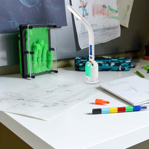Stolní lampu Rabalux Figen doporučujeme těm, kteří ocení dekorativní vzhled i širokou funkčnost. Tato moderní lampa je celá vyrobena z plastu v elegantní bílé barvě, doplněna dekorativní základnou ve tvaru disku. Rameno lampy je tenké a ploché, se dvěma displeji ve spodní části. Kulatá část konstrukce, která se dotýká dekorativní základny, je naplněna tekutým slídovým materiálem – tato část je samostatně spínatelná. Lampa umožňuje RGB osvětlení, díky čemuž může slídová výplň svítit různými barvami. Designová lampa má vestavěný LED světelný zdroj vyzařující přirozené bílé světlo a obsahuje také baterii. Intenzitu osvětlení lze nastavit pomocí dotykového spínače ve spodní části lampy. Stolní lampa je ideální volbou do obývacího pokoje, ložnice nebo pracovny.