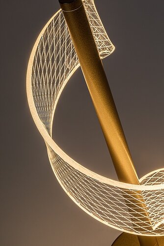 Stolní lampa Rabalux Zofrael je doporučena těm, kteří mají rádi sofistikovaná doplňková svítidla s jedinečným designem. Tento působivý model je vyroben s kovovou konstrukcí ve zlaté barvě a průhledným akrylovým stínidlem s jemným vzorem. Štíhlou, protáhlou konstrukci elegantně obtáčí stínidlo ve tvaru stuhy s vlnitými liniemi. Stabilitu lampičky zajišťuje kulatá ozdobná základna ve zlaté barvě. Tento model může být skutečným klenotem několika místností ve vašem moderním domově: skvěle se hodí do obývacího pokoje, ložnice nebo dokonce do pracovny. Můžete ji umístit na noční stolek nebo jakýkoliv jiný stůl. Lampa má zabudovaný LED světelný zdroj, který vydává teplé bílé světlo, a ovládá se vypínačem umístěným na kabelu. LED technologie zajišťuje úsporu energie a dlouhou životnost.