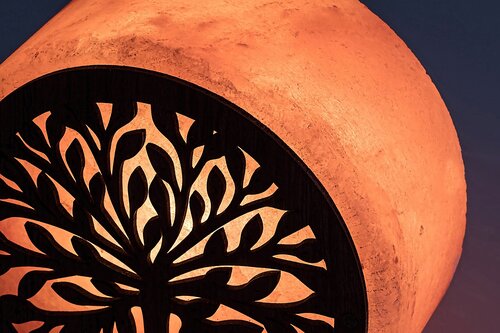 Solná lampa Igdrasil se svými teplými tóny a poutavým designem může být útulným kouskem nábytku v našem moderním obývacím pokoji. Model s charakteristickým tvarem a vzorem je vyroben se stupňovitým, obdélníkovým podstavcem, který drží kotoučovou lampu zdobenou orientálními motivy. Igdrasil, hrající v oranžových odstínech, lze umístit na stůl nebo poličku, která odpovídá jeho stylu. Malou solnou lampu lze použít s jedním světelným zdrojem o výkonu až 15 W, objímkou typu E14. K tomuto modelu se nejvíc hodí světelný zdroj s teplým bílým světlem, který pomáhá vytvářet v místnosti domácí, intimní atmosféru. Rozměry dekorační lampy Igdrasil jsou následující: šířka 70 mm, výška 160 mm, průměr 150 mm. Tento model je dodáván bez světelného zdroje.