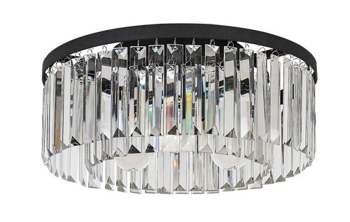 Elegantní stropní svítidlo Eloisa v klasickém stylu může být ozdobou vašeho obývacího pokoje nebo ložnice. Doporučujeme jej především těm, kteří mají rádi lesklé, poutavé modely. Černá kovová svítilna doplňují průhledné skleněné závěsy, které zakrývají světelný zdroj jako kruhový závěs a dodávají tomuto modelu vzhled lustru. Eloise lze připevnit na strop pomocí kulatého černého ozdobného podstavce. Lampu lze používat se třemi světelnými zdroji každý s maximálním příkonem do 25 W a s paticemi typu E27. Pokud je tento zářivý model namontujete v ložnici, doporučujeme použít zdroj teplého bílého světla, který pomůže vytvořit útulnou domácí atmosféru, uvolnit oči a pomůže vám uvolnit se před usínáním. Rozměry stropního svítidla Eloise jsou tyto: průměr 400 mm, vzdálenost od stropu 185 mm, instalační průměr 200 mm. Tento model se dodává bez světelných zdrojů.