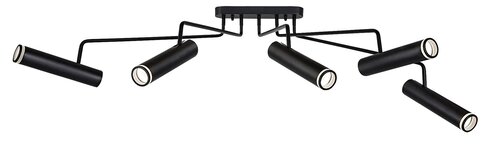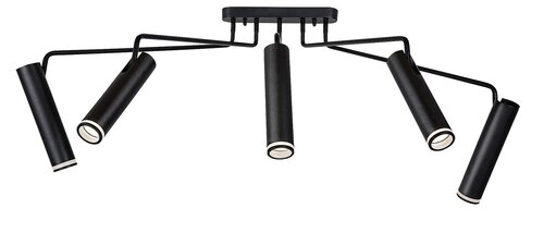 Moderní pětisvětelné stropní svítidlo Senobia může být dominantním kusem nábytku v obývacím pokoji, ložnici nebo pracovně. Lampa je vyrobena z hliníku v černé barvě a lze připevnit na strop pomocí podlouhlého ozdobného podstavce. Válcové hlavice s malým průměrem jsou namontovány na koncích ramen upevněných na podstavci a jsou doplněny bílými akrylovými stínítky. Ramena, která drží hlavy lampy, směřují každé jiným směrem a úhel hlav lampy lze nastavit v rozmezí 90° až 180°, takže světlo můžete nasměrovat podle svých představ. Díky své velikosti a designu poskytuje svítidlo Senobia účinné osvětlení i v prostorné místnosti. Lampu lze používat s pěti světelnými zdroji, každý s maximálním příkonem do 35 W, typ patice GU10. Rozměry svítidla Senobia jsou tyto: šířka 1300 mm, průměr každého stínítka 55 mm, délka 150 mm, vzdálenost svítidla od stropu 500 mm, instalační průměr 330 mm. Pětisvětelná stropní svítilna Senobia se dodává bez světelných zdrojů.