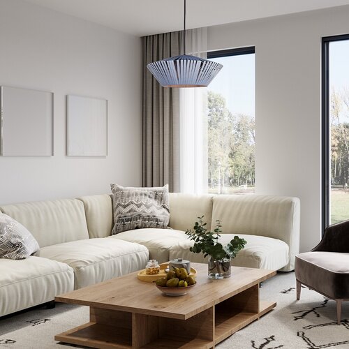 Závěsné svítidlo Rábalux Revan je představitelem stylu vintage. Je to ideální volba, chcete-li jedinečně vypadající lampu, která zajistí útulné osvětlení vaší místnosti. Tělo závěsného svítidla je vyrobeno z kovu černé barvy a speciální stínítko je vyrobeno z šedých textilních pásů. Světlo ze žárovky uvnitř lampy se filtruje přes mezery mezi pásy. Model s výrazným designem lze umístit do obývacího pokoje nebo ložnice a používat jej se zdrojem teplého nebo přirozeného bílého světla. Závěsné svítidlo je vybaveno paticí E27 pro žárovku o výkonu nejvýše do 6 W. Výrobek se dodává bez světelného zdroje.