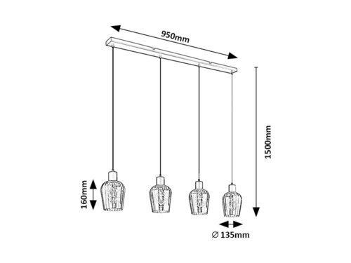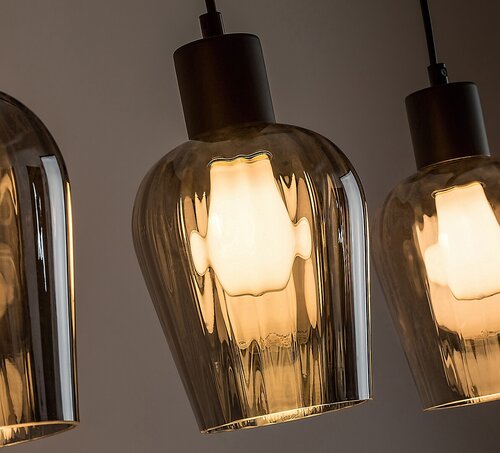 Čtyřitá závěsná svítidla Florian ve vintage stylu se doporučují především do obývacího pokoje nebo ložnice. Model z matného černého kovu doplňují válcová stínítka, která se otevírají ve spodní části a mírně se zužují směrem dolů, a lze jej připevnit ke stropu pomocí obdélníkového ozdobného podstavce. Hlavy lampy jsou zavěšeny ve frontách vedle sebe ve stejné výšce. Protože světelné zdroje jsou viditelné přes tónované sklo, vyplatí se vyjmout estetické žárovky s jiným tvarem než je tradiční žárovka. Florian lze provozovat se čtyřmi světelnými zdroji s maximálním příkonem 40 W, typ patice E27. V závislosti na vašem vkusu a místě instalace si můžete vybrat zdroje teplého nebo přirozeného bílého světla. Rozměry čtyřitého závěsného svítidla Florian jsou tyto: šířka 950 mm, průměr každého stínítka 135 mm, výška 160 mm, převis svítidla je 1500 mm. Tento model se dodává bez světelných zdrojů.
