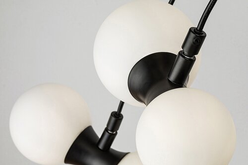 Závěsné šestinásobné svítidlo Rábalux Lition může být mazlíčkem milovníkem moderního, hravého stylu. Jednotlivé hlavy lampy černého kovového modelu doplňují dva - dva různě velká kulatá bílá kopulovitá stínítka – jejich materiálem je sklo. Jedinečný vzhled lampy umocňuje skutečnost, že každá hlava lampy je zavěšena v jiné výšce. Díky klasické barevné kombinaci lze závěsné svítidlo snadno zakomponovat do zařízení mnoha místností. Do objímek G9 lze vložit šest žárovek o výkonu až 28 W každá. Lampa je vhodnou volbou do obývacího pokoje nebo ložnice, kde lze použít k vytvoření útulného světelného efektu. Může se používat s teplými nebo přirozeně bílými žárovkami. Výrobek se dodává bez světelného zdroje.